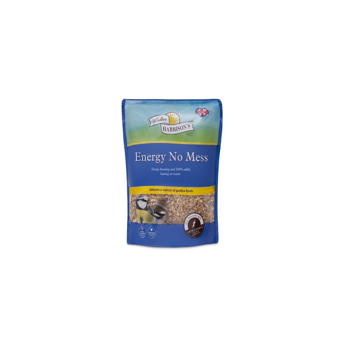 Walter Harrisons no mess is a blend of high quality, energy boosting seeds. This husk free, no mess mix means no waste. Attracts a variety of garden birds. Can be fed from a seed feeder, bird table or on the ground. Sunflower Hearts, Cut Maize, Peanut Granules, Yellow Millet, Red Millet, Red Dari, Soya Oil