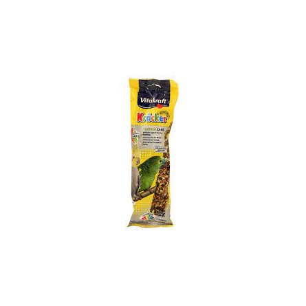 With an original Vitakraft Kräcker®, your cockatiel or parrot will have to work for its food. This delicious mix of grains is triple baked on a natural wooden nibble stick to keep your bird occupied with extra crunchy fun. Our special Kräcker® for moulting birds also provide all the essential minerals and vitamins your bird needs to restore its energy levels during the moulting season. Vitakraft Kräcker® - the original nibble sticks!, With vitamins and minerals, 2 Kräcker® per pack, Triple baked, On untreated wooden nibbling sticks, With plastic attachment clip, Contains no antioxidants, Keep a Vitakraft Kräcker® in your birdcage at all times!