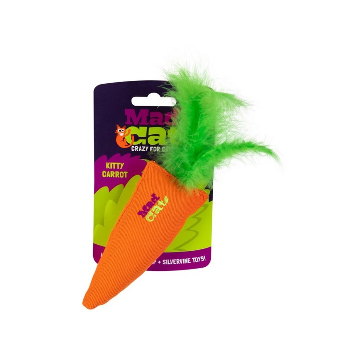 The Mad Cat Kitty Carrot turns the tables, predator is now prey! Adorable plush filled with a unique blend of premium catnip and silvervine that’s maximum potency, pure, and pesticide free. Silvervine is an all-natural catnip alternative that cats love, it elicits a similar reaction to catnip, and works for many cats who normally are not affected by catnip