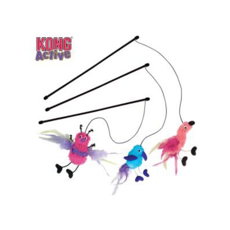 The KONG Feather Teaser is designed for interactive play, and each toy contains KONG Premium North American Catnip for added stimulation. Bright feathers and a crinkle sound tempt cats to capture this toy.