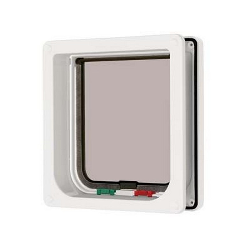 Self lining to 2" (50mm) thick - ideal for all doors, very thin panels and screens. Easy to use 4-Way lock for greater control of your cat, Silent Action - won't frighten pets or disturb owner, Draught and weatherproof brush sealed flap with magnetic closure, Transparent flap.