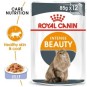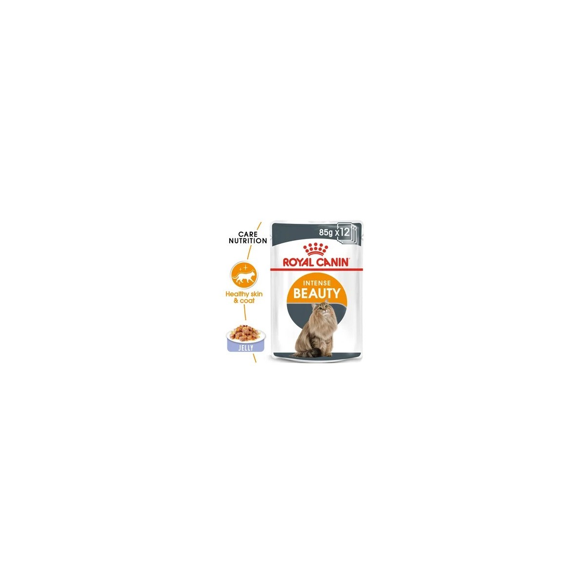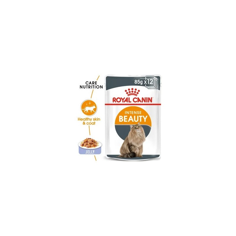 Your cats coat is a thing of beauty, which is why consuming an ideal level of nutrients is essential, otherwise the general health and appearance of its coat can be less than optimal. ROYAL CANIN® Intense Beauty in Jelly contains a patented complex of antioxidants and fatty acids (omega-3 & omega-6) specially formulated to help support and maintain the beauty and health of your cats coat, as well as its skin. Hair and skin care is vital to your cats wellbeing, it surrounds its bodies externally and is a key indicator of whether its living in comfort or not as is often said, whats on the outside usually reflects what happening on the inside. With ROYAL CANIN® Intense Beauty in Jelly, you can ensure that your cats skin health, coat health and general wellbeing is never compromised. ROYAL CANIN® Intense Beauty in Jelly also helps your cat maintain an ideal weight with a fat content of just 3.7% to prevent excess weight gain, and an optimal level of protein to contribute to healthy muscular growth and development. A healthy urinary system is also supported by ROYAL CANIN® Intense Beauty in Gravy, it helps maintain your cats bladder function. Among the variety of nutrients, meat and fish are both included for optimal palatability as well as a host of vegetable derivatives for extra vitamin and mineral support for complete skin and fur nourishment. To cater to each cats individual preferences, ROYAL CANIN® Intense Beauty is also available as dry food, with crunchy and tasty kibble. If youre considering mixed feeding, simply follow our feeding guidelines to ensure your cat gets an accurate amount of both wet and dry food for optimal benefit. At ROYAL CANIN® were committed to providing nutritional solutions to your pets needs. All of our products undergo an extensive quality control process in order to guarantee the optimum quality of food as well as catering to your cats specific dietary requirements and lifestyle. This means that when your cat eats ROYAL CANIN® Intense Beauty in Jelly, its getting a complete and balanced diet.