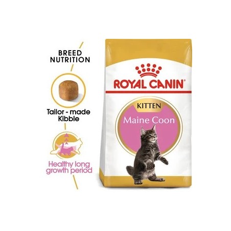 Your Maine Coon kittens growth period is a time of change and new experiences. While its immune system is in the early stages of development, its important that your kittens diet meets all of its unique nutritional needs. ROYAL CANIN® Maine Coon Kitten food is specially formulated with all the nutritional needs of your kitten in mind. By introducing a nutritious diet from its early days, youre helping to support its long term health as it grows into adulthood. For your Maine Coon kitten, the growth period is exceptionally long and lays down the framework for this breeds uniquely large, adult stature. Thats why ROYAL CANIN® Maine Coon Kitten has an adapted energy and protein content, as well as precisely balanced vitamins (including vitamin D) and minerals to support healthy bone and joint development. Although your kittens digestive system is developing, it still remains immature. Thats why your kitten requires a diet of high quality protein to support and maintain healthy digestion. ROYAL CANIN® Maine Coon Kitten contains a highly digestible protein known as Low Indigestible Protein (or L.I.P), as well as prebiotics which help to support your kittens intestinal flora. As your Maine Coon kitten grows, its natural defences continue to develop; the patented complex of antioxidants (such as vitamin E) in ROYAL CANIN® Maine Coon Kitten food helps in supporting your kittens natural defences as they develop. Whats more, the kibble is adapted for size and texture to support its large jaw; it also encourages chewing to maintain its oral hygiene. If youre considering mixed feeding, simply follow our feeding guidelines to ensure your cat gets an accurate amount of both wet and dry food for optimal benefit. At ROYAL CANIN® were committed to providing nutritional solutions to your pets needs. All of our products undergo an extensive quality control process in order to guarantee the optimum quality of food as well as catering to your kittens specific dietary requirements and lifestyle. This means that when your kitten eats ROYAL CANIN® Maine Coon Kitten, its getting a complete and balanced diet.