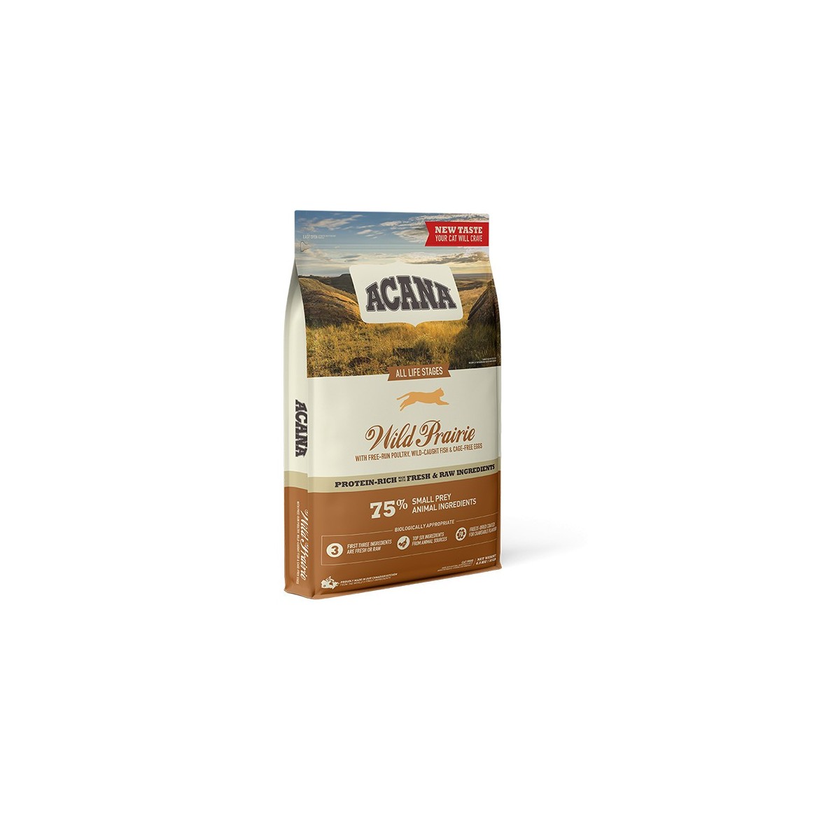 ALL BREEDS & LIFE STAGES Cats biologically require a diet rich in protein from whole animal ingredients. Inspired by our vast prairies and pristine lakes, ACANA Wild Prairie offers your cat quality animal ingredients from free-run chicken and turkey, freshwater fish, and cage-free eggs.