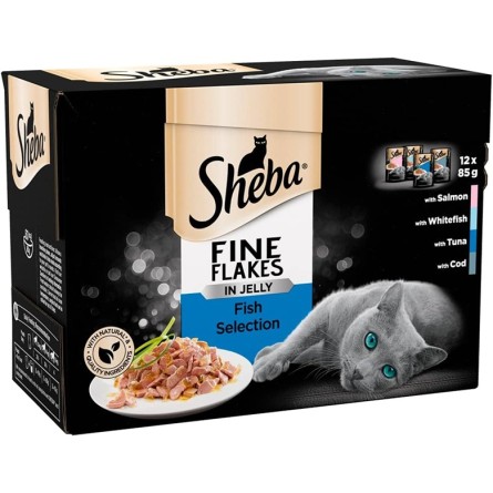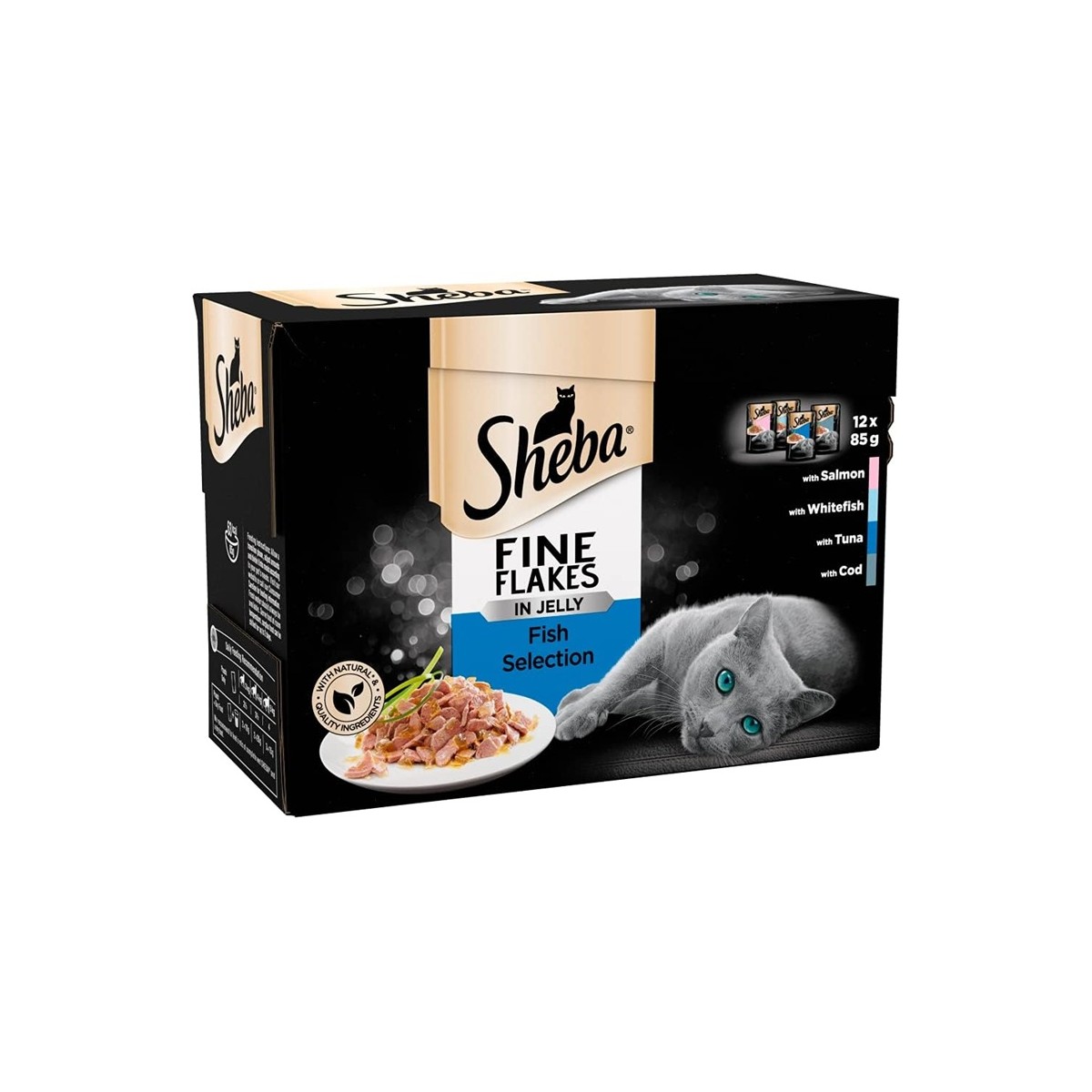 Cat food in divine melting jelly made with natural* and high quality ingredients. High quality SHEBA® wet cat food. 100% complete and balanced everyday meal for your feline companion. Sheba is committed to responsibly sourced fish. Adult cat food with a delicious variety of cod, salmon, tuna and whitefish in jelly. Wet cat food pouches served in a convenient pouch; squeeze for the ultimate clean and elegant serve. Cat food developed with our nutritionist from Waltham Petcare Science Institute.