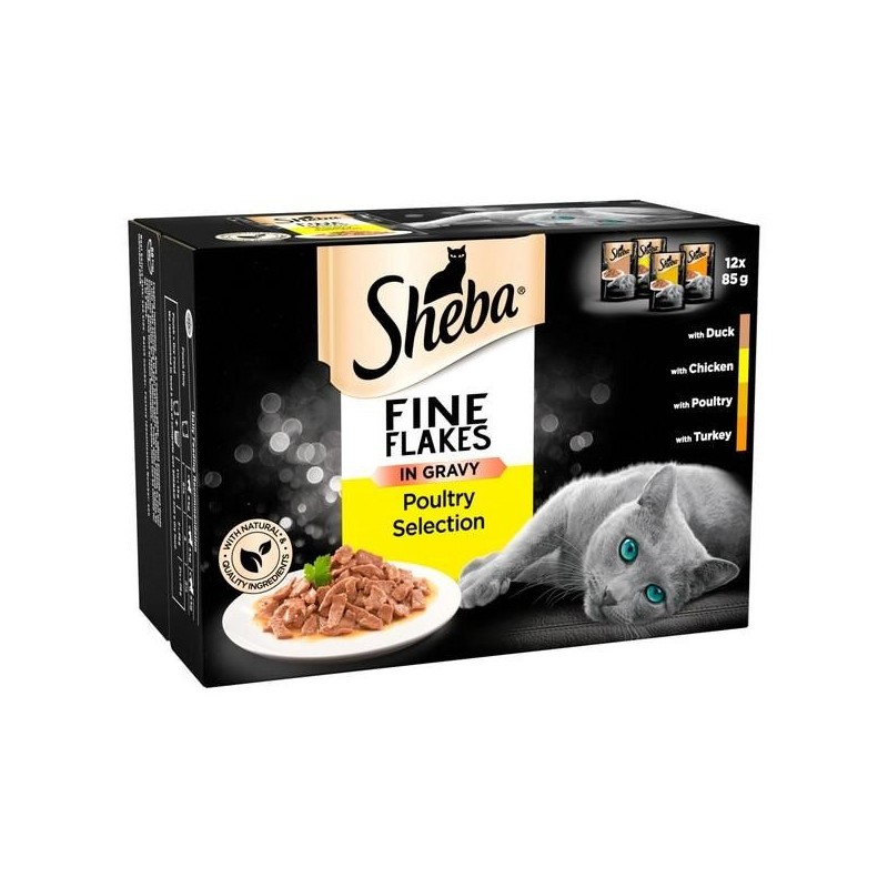 Delicate fine flakes carefully coated in a delicious gravy. High quality Sheba adult wet cat food in gravy provides complete and balanced everyday meals for your feline companion. Sheba wet cat food is made with no fillers. This ensures that your cat is getting the nutrients they need and nothing they don't. This delicious wet cat food recipe will become a familiar favourite and provide a variety of tastes & textures your cat is bound to adore.