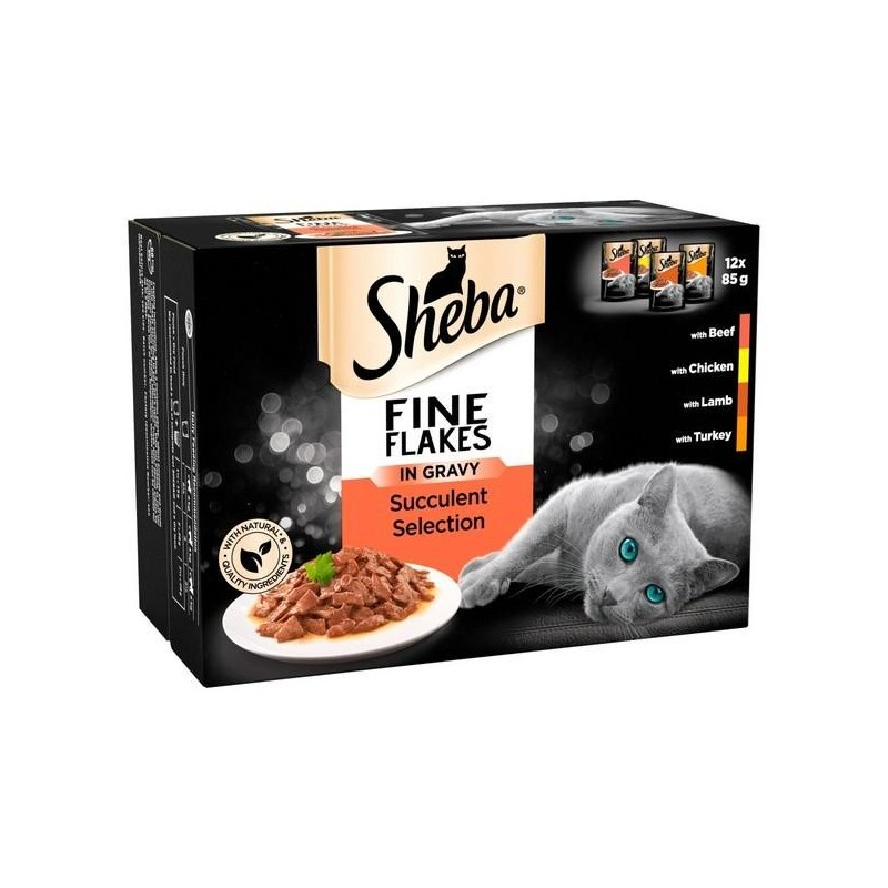 Delicate fine flakes carefully coated in a delicious gravy. High quality Sheba adult wet cat food in gravy provides complete and balanced everyday meals for your feline companion. Sheba wet cat food is made with no fillers. This ensures that your cat is getting the nutrients they need and nothing they don't. This delicious wet cat food recipe will become a familiar favourite and provide a variety of tastes & textures your cat is bound to adore.