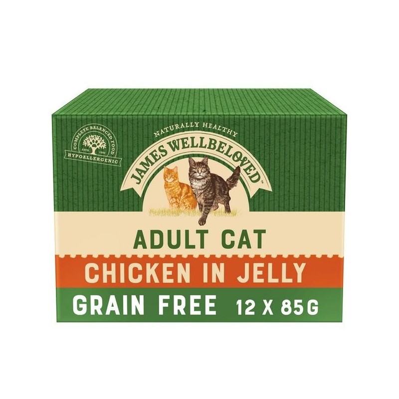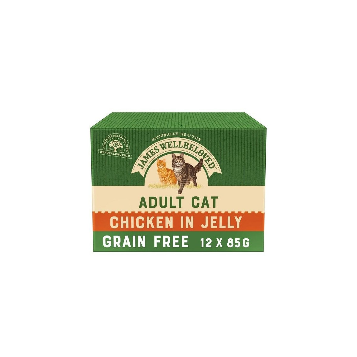 JAMES WELLBELOVED Adult Cat Grain Free Pouches with Chicken in Jelly 12x85g