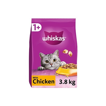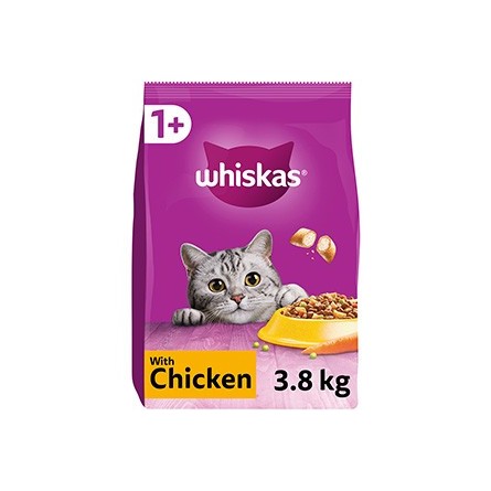 WHISKAS® 1+ with chicken cat food is carefully prepared to give your feline friend everything they need to keep them purring. Made with high quality ingredients that are sourced only from trusted suppliers, each delicious bowl of dry cat food provides the purrfect balance of vitamins and minerals to keep them happy, healthy & running to the bowl every mealtime.