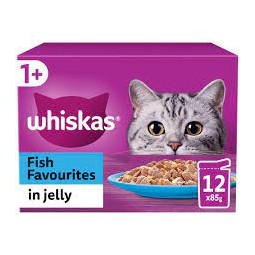 Give your feline partners everything they need to stay healthy and happy with this Whiskas Adult Cat Food Pouches Fish in Jelly. This cat food is meant for 1+ aged cats and comes in a fish collection of 12 x 85g convenient pouches.