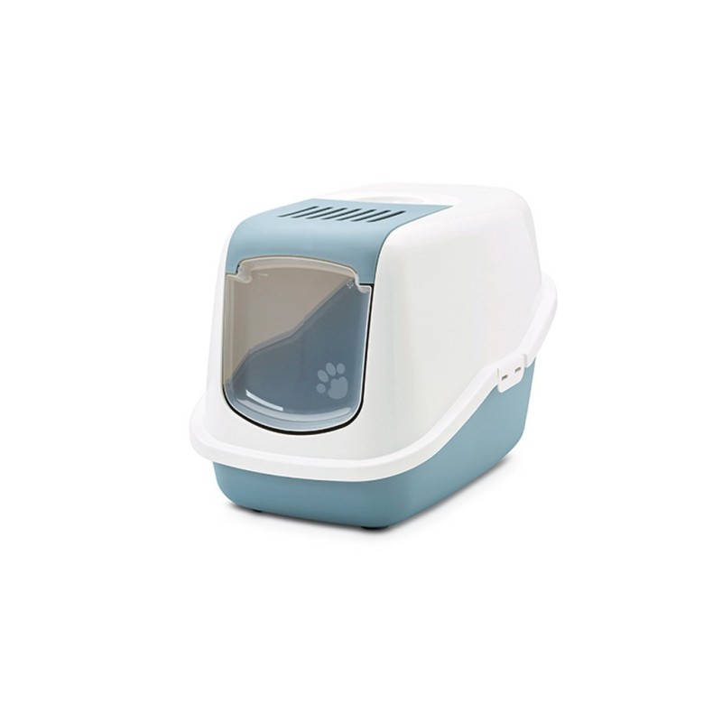 The cat toilet home Nestor is easy to clean. The specially developed front opens wide, allowing the soiled cat litter to be removed carefully and quickly without removing the top part. The tray of the Nestor has a raised back which prevents leakages. With built-in handle, plastic swing door and carbon filter.