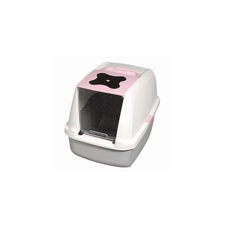The Catit Hooded Litter Box provides privacy while retaining the litter inside the box