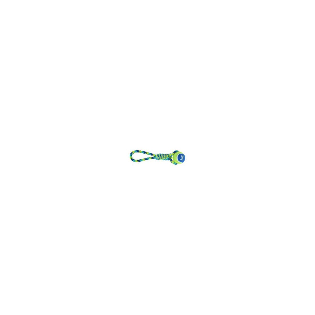 24 K9 Fitness by Zeus models availableBlue and Green. Tough tennis ball and rope construction.Perfect for playing fetch or tug with your dog.Rope Tug Size : 9 in (23 cm)Tennis Ball Size : 5.08 cm dia. (2 in dia.)