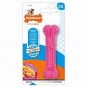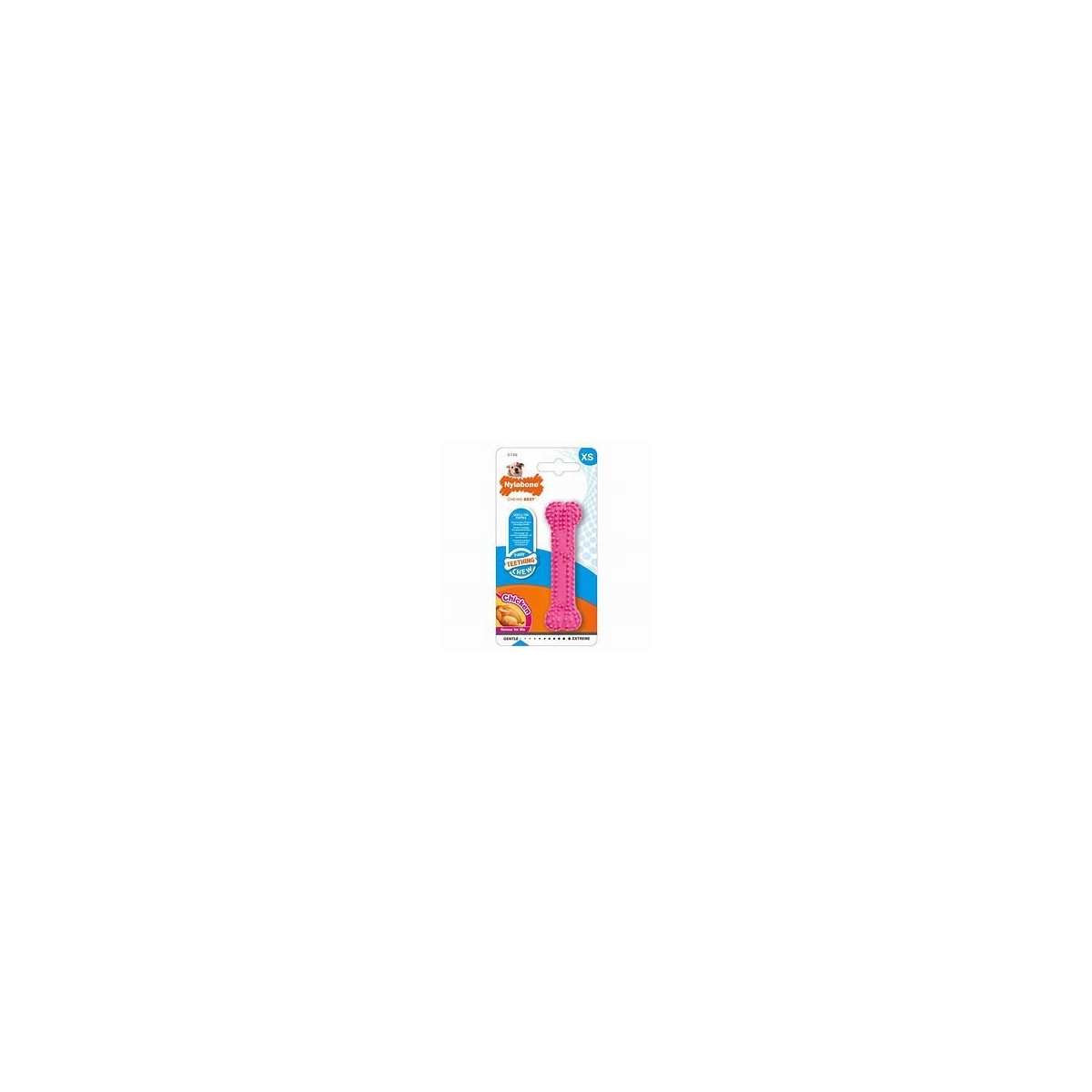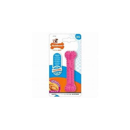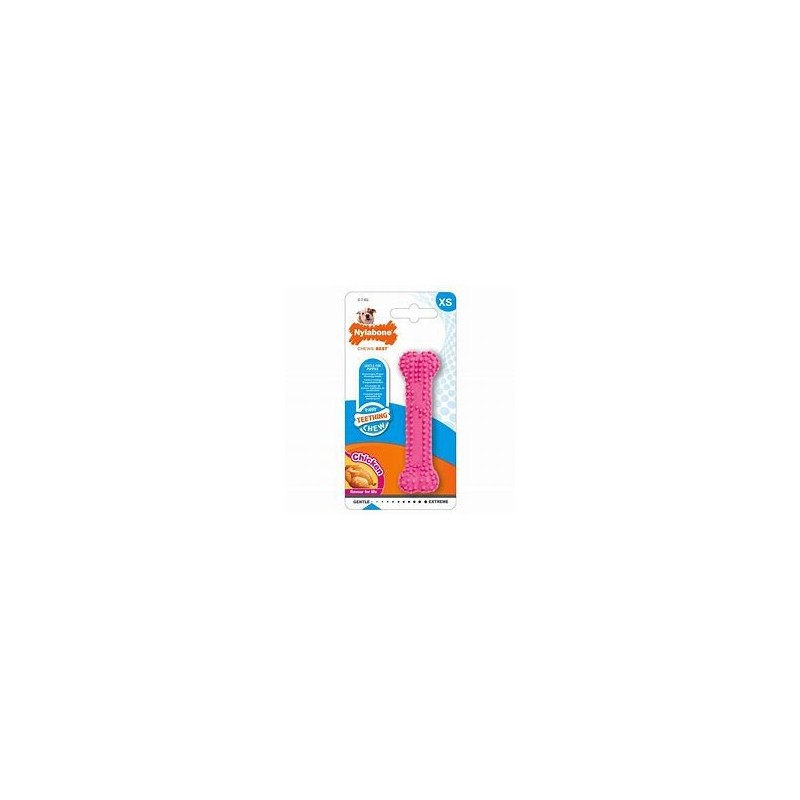 Designed for tiny pups, this soft dog chew toy encourages nondestructive chewing routines while satisfying the natural urge to chew. The nubs on this chicken dental chew toy help clean teeth and prevent plaque and tartar, giving your dog a brighter, healthier smile! Go ahead and throw your puppy a Nylabone!