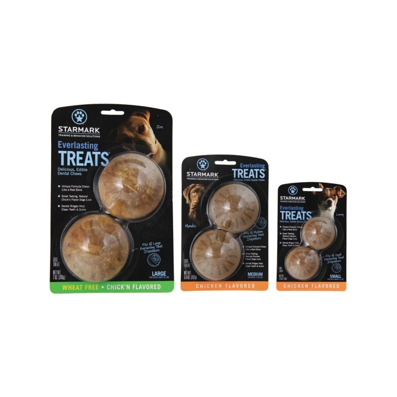 An everlasting chicken flavoured treat that is completely edible and digestible. Can be used alone or combined with an Everlasting Treat Ball or Bento Ball to provide long lasting chewing enjoyment. Available in three sizes and contains two treats in each pack.