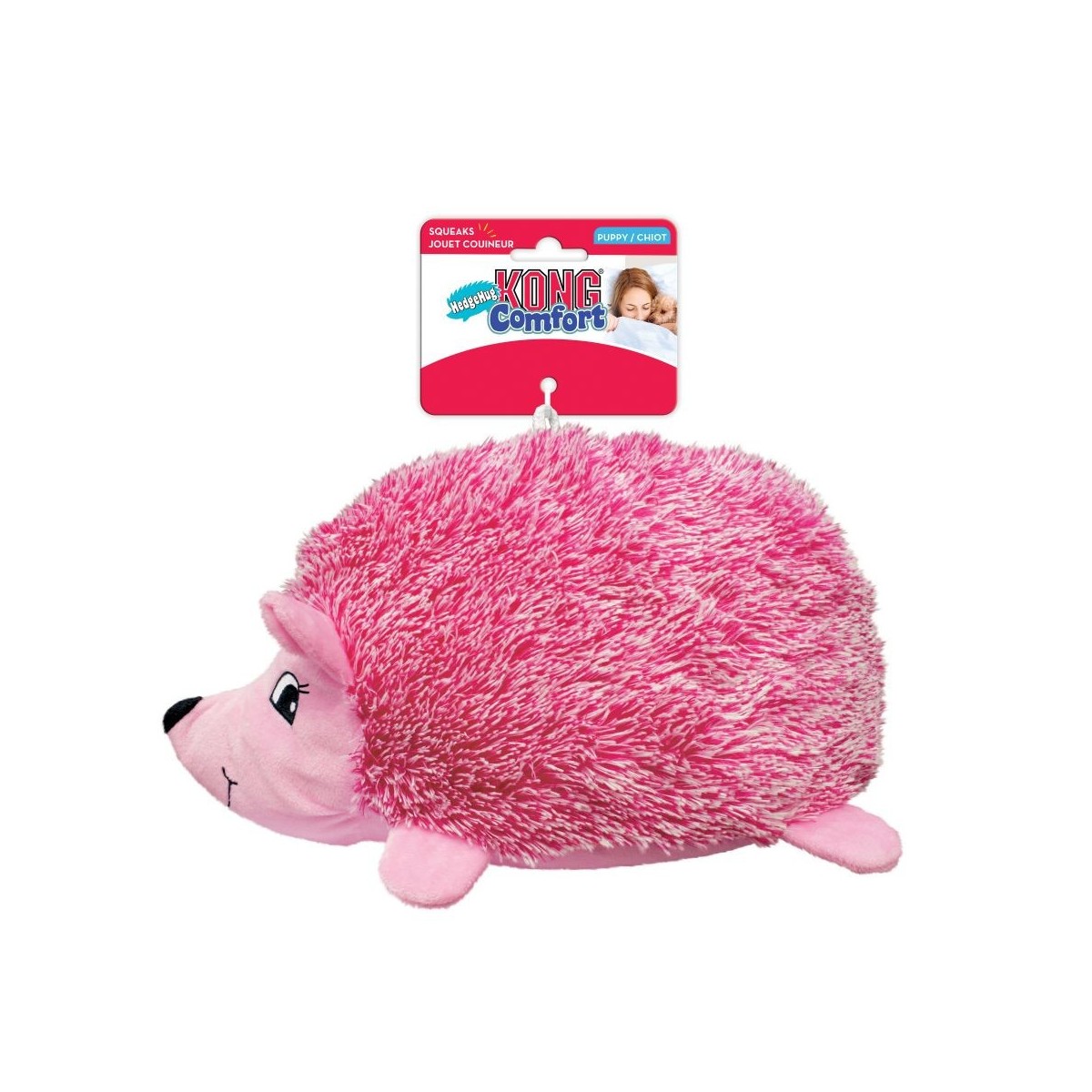 KONG Comfort Hedgehugs soft plush and cushy body makes it ideal for cuddling and gentle play-no quills here, just cuteness. With a squeaker that sparks dog's natural instincts, calling them to romp. This huggable hedgehog crinkles, keeping dogs engaged for extended play sessions.