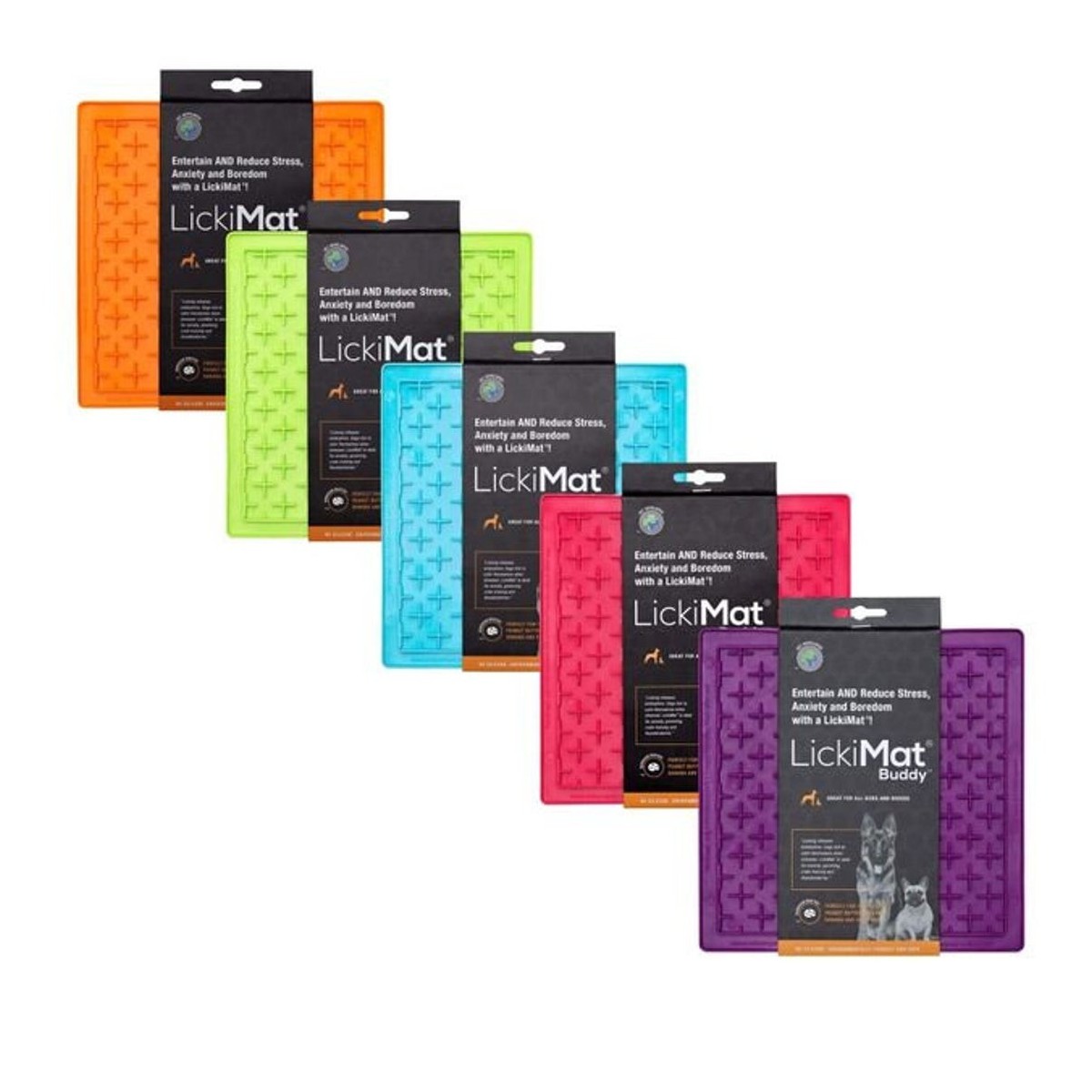 Most pet owners lead busy lives and feel guilty leaving their pets home alone for many hours. Lickimat Boredom Busters are designed to enhance your pets environment as well as benefiting their health. Lickimats are designed as tasty boredom busters for your dog. By spreading your pet's favourite soft treat over the surface, you create a tasty fun game with them having seek out every morsel with their tongue. Freeze treats in summer for refreshing longer lasting entertainment.