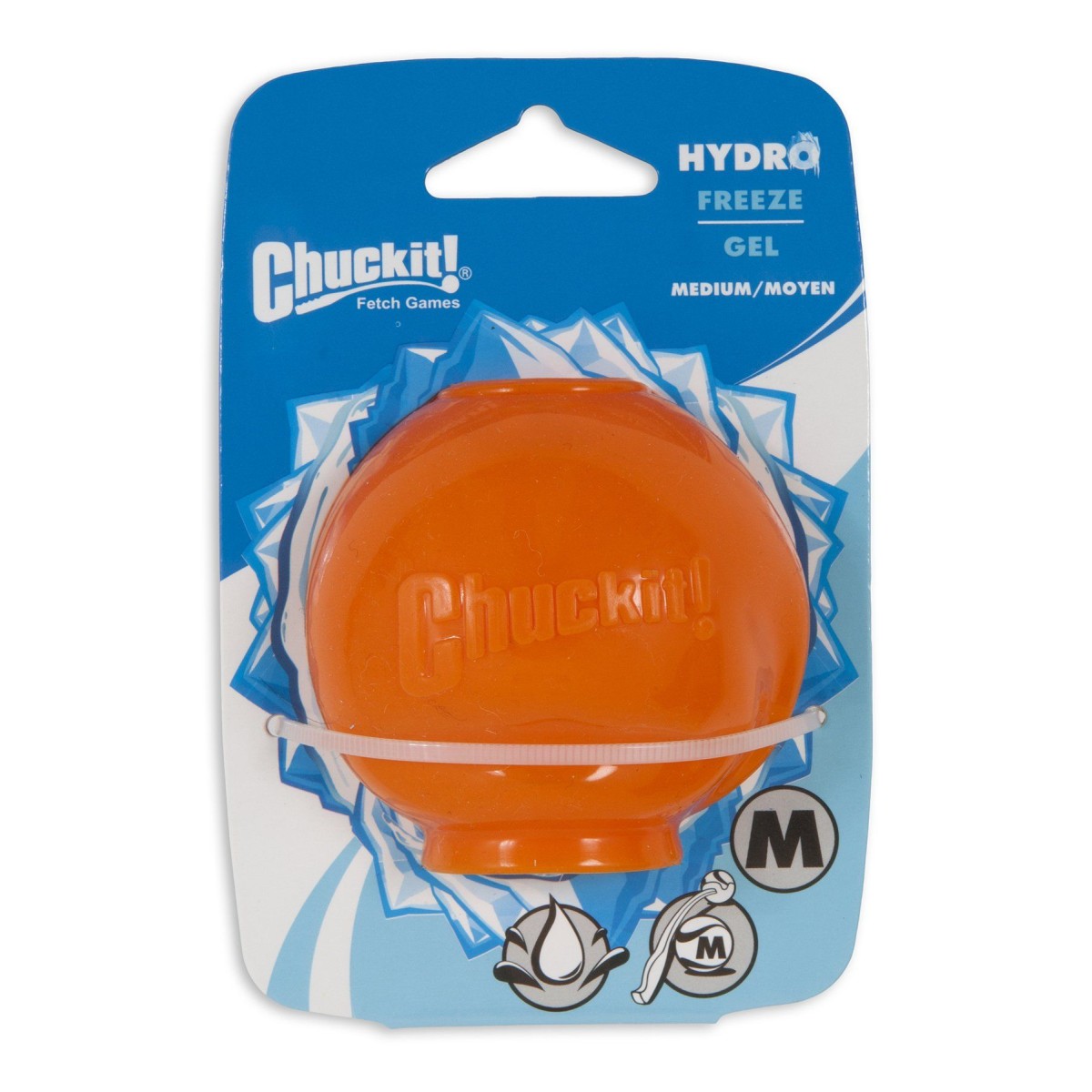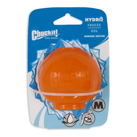 Chuckit! Hydrosqueeze and Hydrofreeze toys are designed to hold and release water during play, helping to keep dogs cool on hot Summer days. Bright orange and blue for high-visibility on water or land.