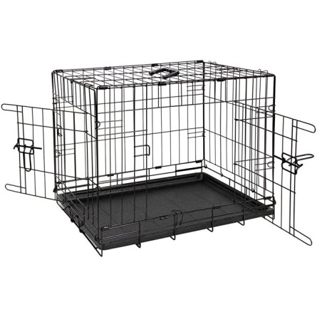Portable metal crate which can be used in or outdoors. Easy to assemble the crate offers safe and easy access through the front door. A removable tray in the base easily slides out, making cleaning simple and quick.