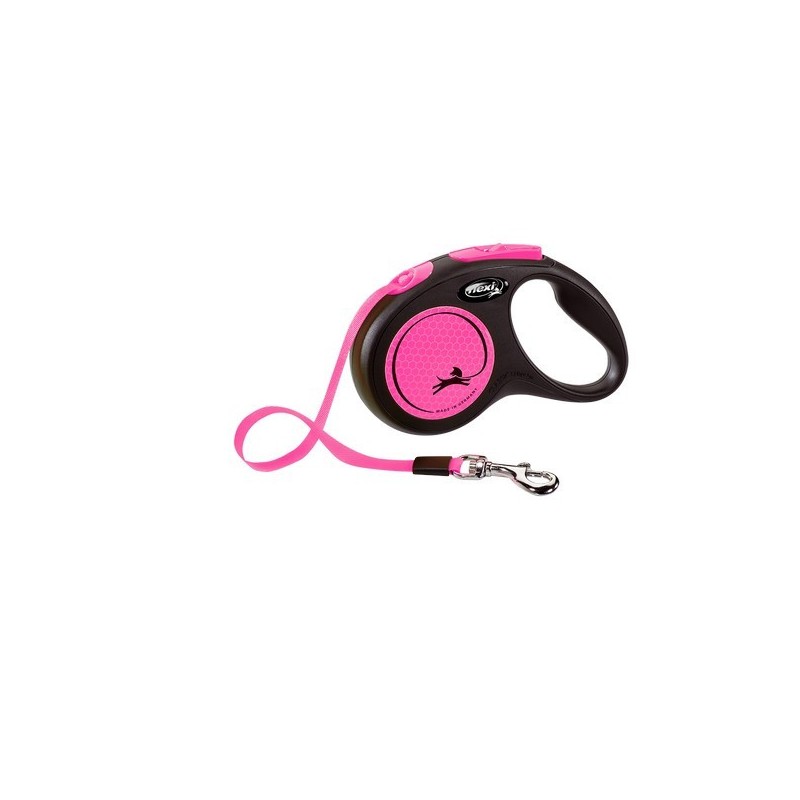 flexi New Neon Reflect retractable lead size S, tape 5 m, for dogs up to 15 kg, black/neon pink,Plastic & Metal
