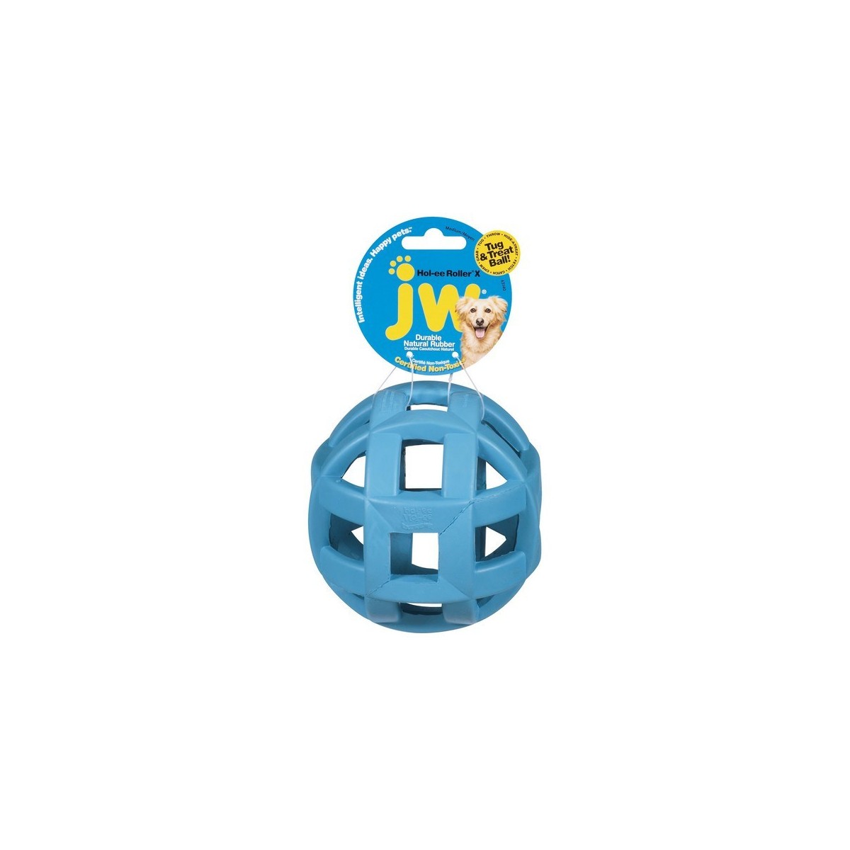 The JW Hol-ee Roller X extreme dog toy is a unique, thick natural rubber ball for dogs. It's tougher and thicker than the traditional Hol-ee Roller. This product is designed for tough dogs and tough chewers. The Hol-ee Roller X has strategic patented honeycomb cut-outs covering the ball so the dog can grab it and pick it up. It's also great for games of tug-of-war! The cut-outs can also be easily filled with treats or small toys for long-lasting boredom-busting fun! All JW pet products are intelligently designed with a commitment fun first while providing quality, non-toxic toys for your pets.