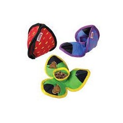 This durable plush toy, delivers two-in-one action, as a mentally challenging treat puzzle and doubling as a fetch toy when closed. Ballistic Hide 'N Treat is designed with heavy-duty pockets and non-abrasive Velcro enclosures to hide treats and occupy dogs through varying levels of difficulty while providing a comfortable chewing experience. Open the pockets for an easy challenge and close to increase the difficulty.