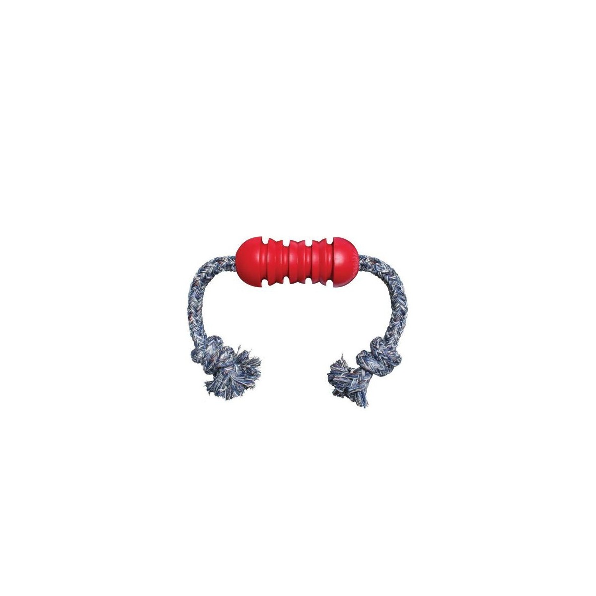 The KONG Dental with Rope toy is designed to support a dog's instinctual need to chew while having the added benefit of cleaning teeth. Made out of KONG Classic's unique all-natural red rubber formula, the KONG Dental Rope's unique grooves give dogs an appropriate chewing outlet while the all-natural rope have the added benefit of cleaning gums and polishing teeth while your dog is delighted with the complete chewing experience. Want to extend your dog's chew time? Want to extend your dog's chew time? Stuff with KONG Snacks and entice with a dollop of KONG Easy Treat. Proudly made in the USA