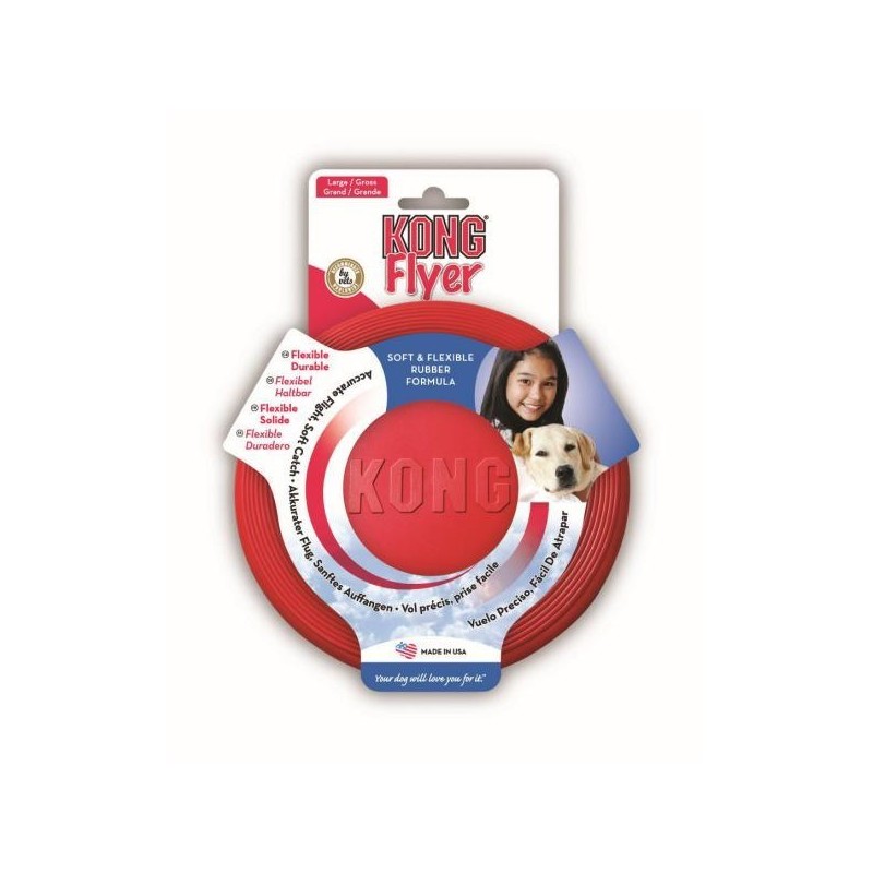 KONG Classic Flyer is made for fetching. It is made of durable KONG Classic rubber which allows for a forgiving catch, plus the material delivers a dynamic rebound just in case your dog misses the initial toss. Let your dogs love of fetch take flight with a safer disc that delivers tons of healthy activity.