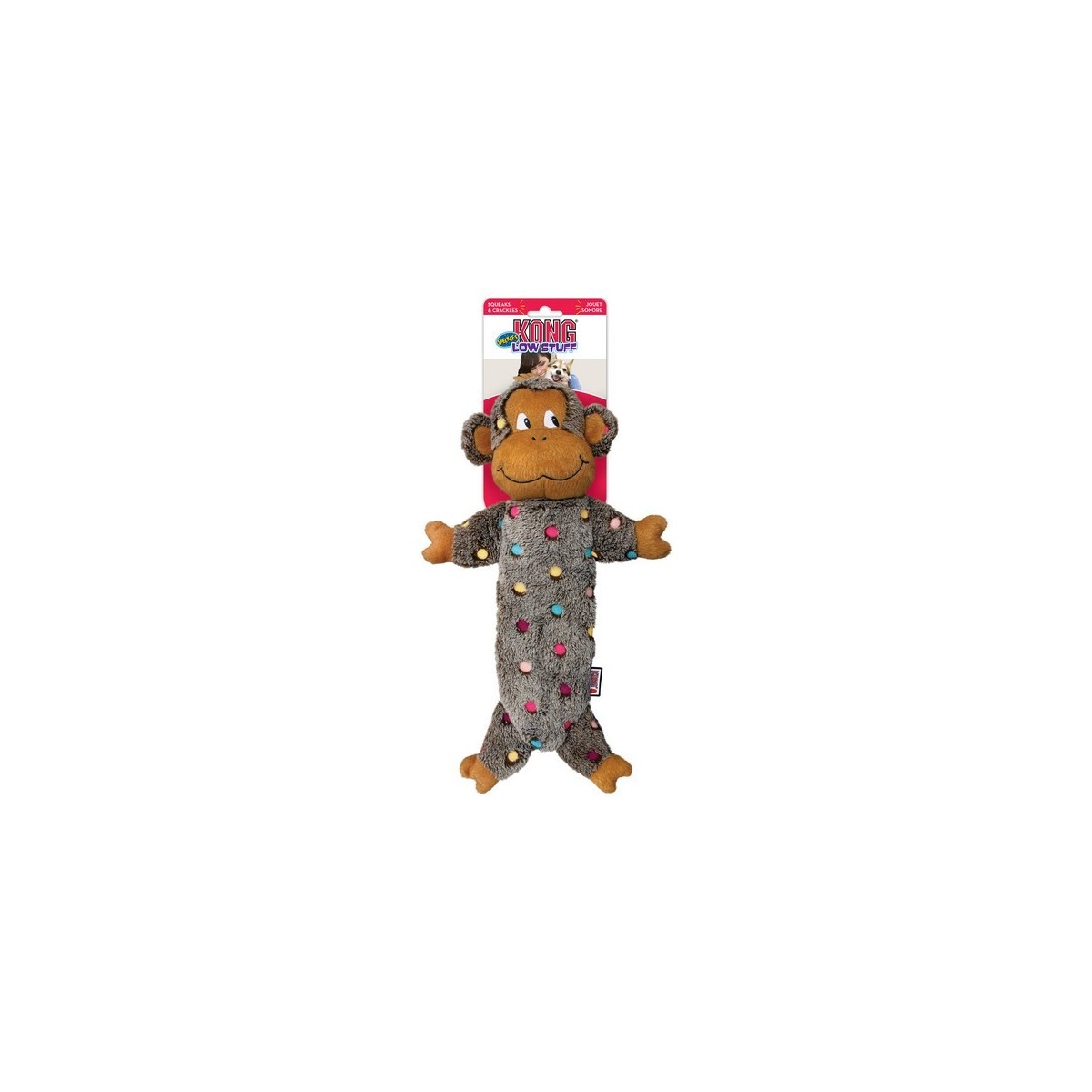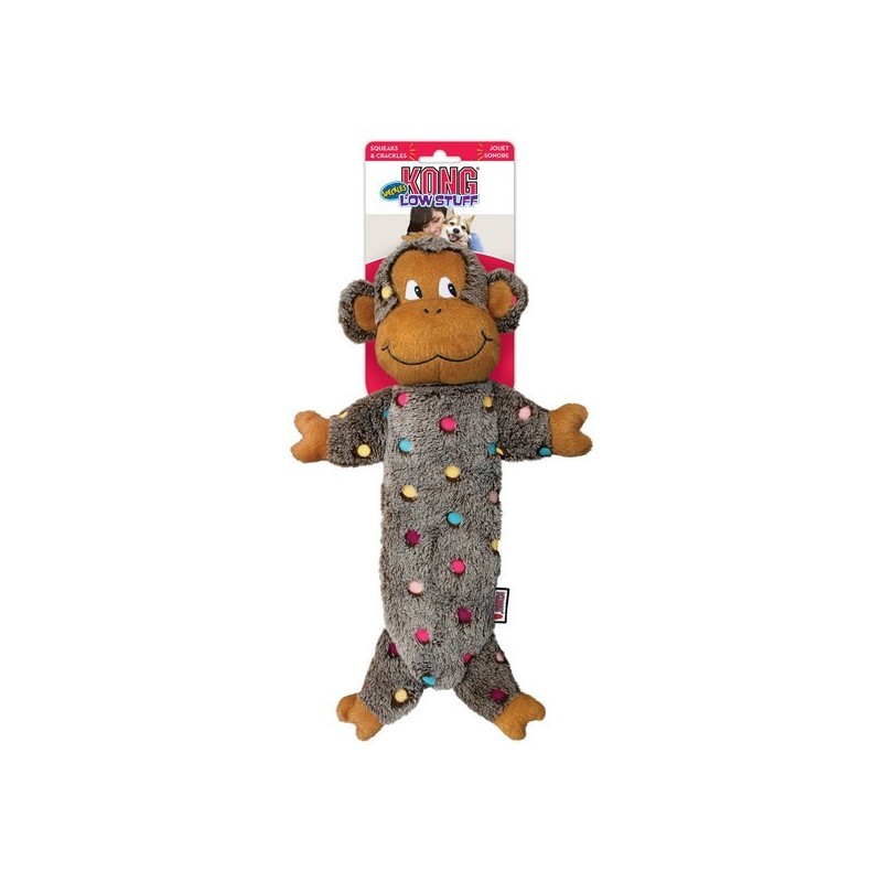 KONG Low Stuff Speckles add fun and engagement to rounds of natural tugging and shaking while having low stuffing for less mess. The long, flat body and dangly ears make the Low Stuff pig character an ideal playmate for indoor play while satisfying a dogs play instincts. Crinkle sounds and a squeaker entice on-going engagement, while extra stitching adds to the long lasting fun.