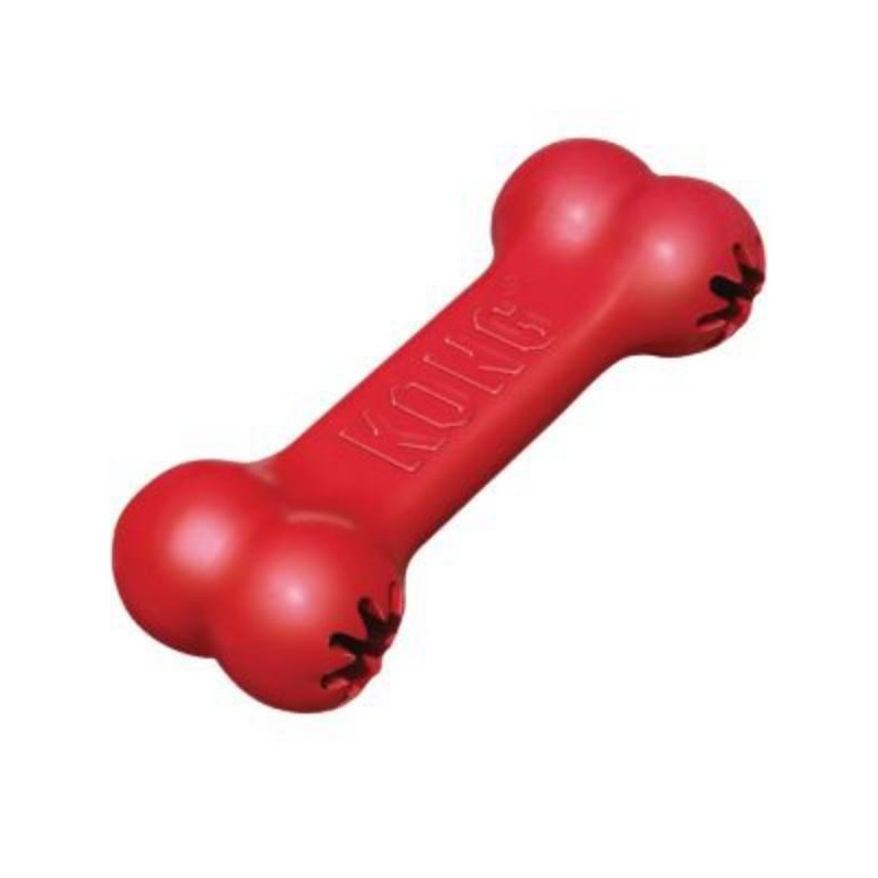 The KONG Goodie Bone toy engages dogs that delight in chew sessions. Made from the KONG Classic unique all-natural red rubber formula, this bone features the patented Goodie Grippers that turn this entertaining toy into a fun treat dispensing challenge that can be stuffed with your dog's favorite kibble. Want to extend the chew session? Stuff with KONG Snacks and entice with a bit of KONG Easy Treat. Proudly made in the USA.