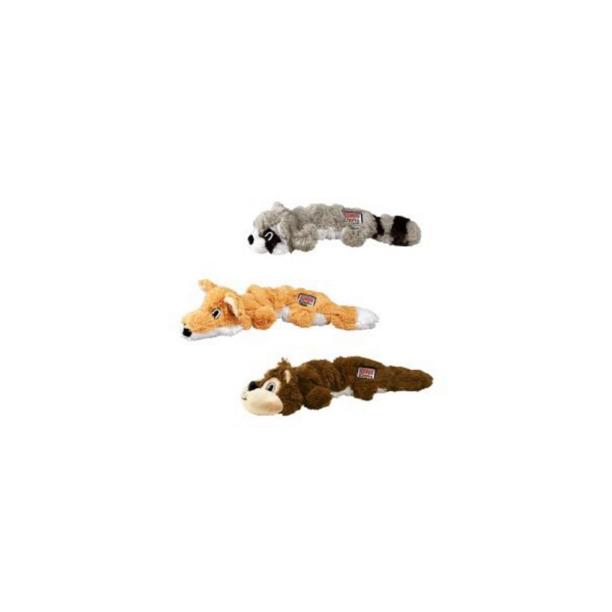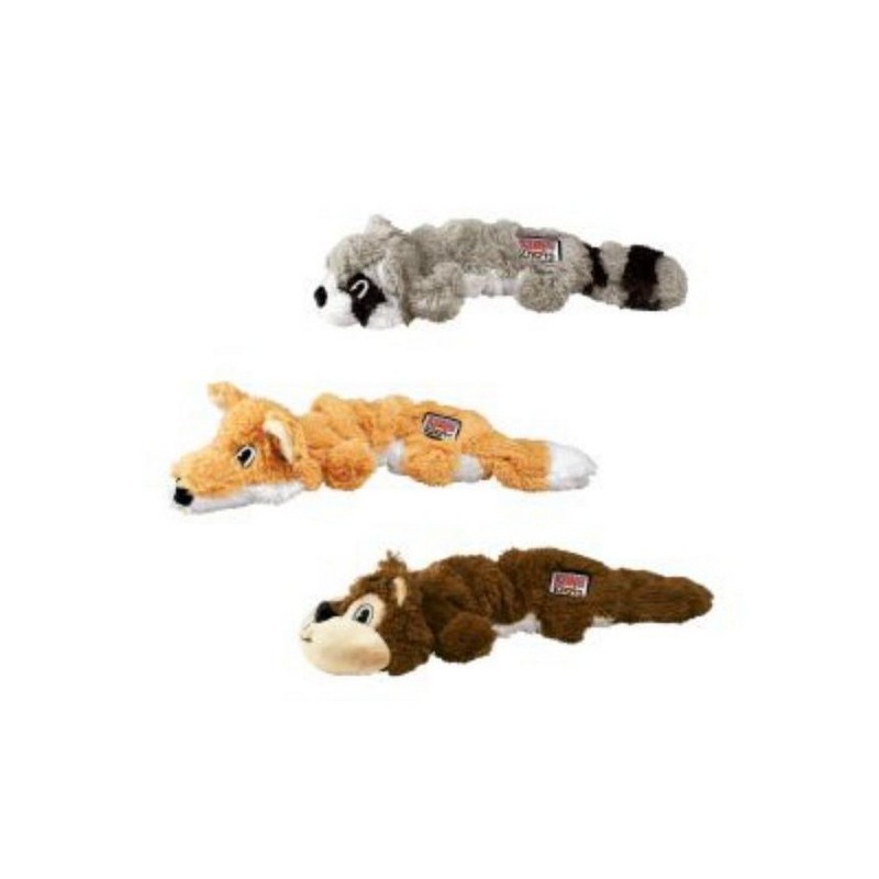 KONG Scrunch Knots are realistic pet toys that keep dogs coming back for more. Plush material scrunches around the internal coiled rope, while stretchy sides create natural movement to entice play. The internal knots satisfy natural instincts and these toys contain no stuffing for less mess. Squeaks for added enjoyment!