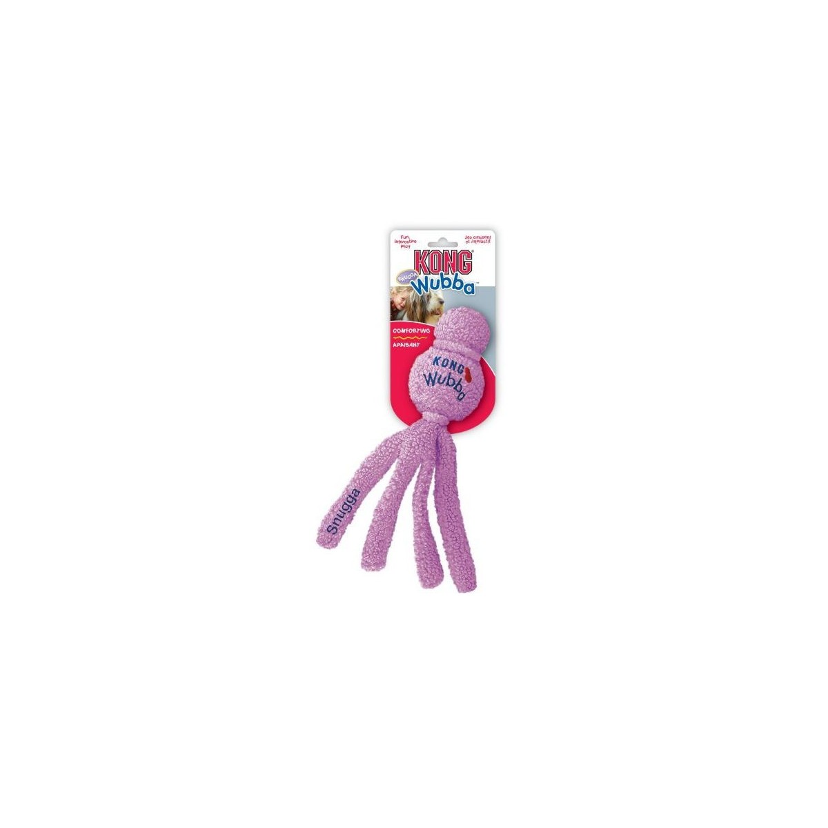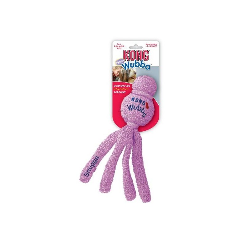 The KONG Snugga Wubba is an interactive toss and comfort toy. There are no squeakers inside for quiet, gentle indoor play. The soft, thick fleece fabric cover is comforting to snuggle with and is great for indoor or outdoor play. Want to know more? Watch KONG Wubba in action!