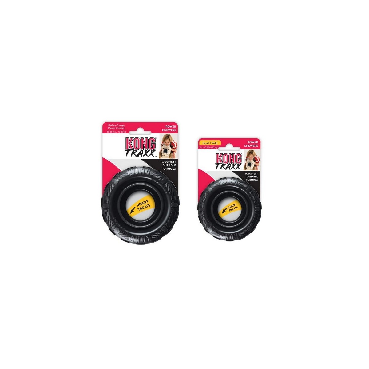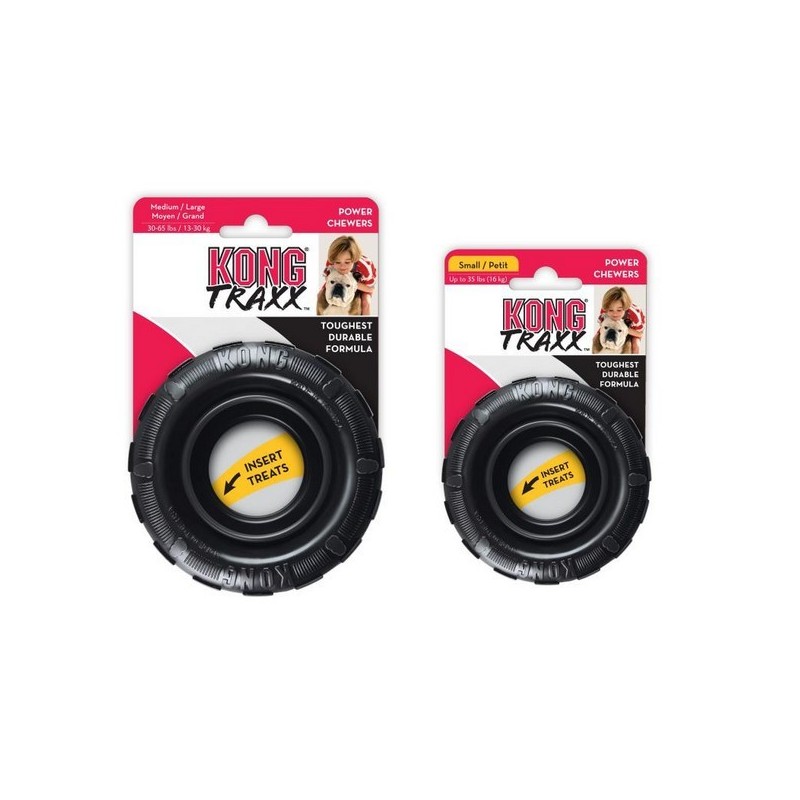 KONG Tires is a durable tire chew designed to provide the ultimate chewing experience. The uniquely shaped sidewalls and thick outer tread create a super durable, elastic barrier. The sidewalls are designed to double up and rebound when compressed to provide an active chewing experience, and the Tires are perfect for bouncy games of fetch.