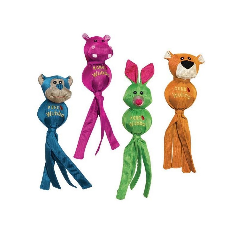 The KONG Wubba Ballistic Friends are the cutest and toughest interactive squeak and shake toys available. These versatile toys are perfect for indoor and outdoor use, and their floppy tails make them easy to pick up and throw. Each toy is covered with durable, reinforced nylon for added toughness.