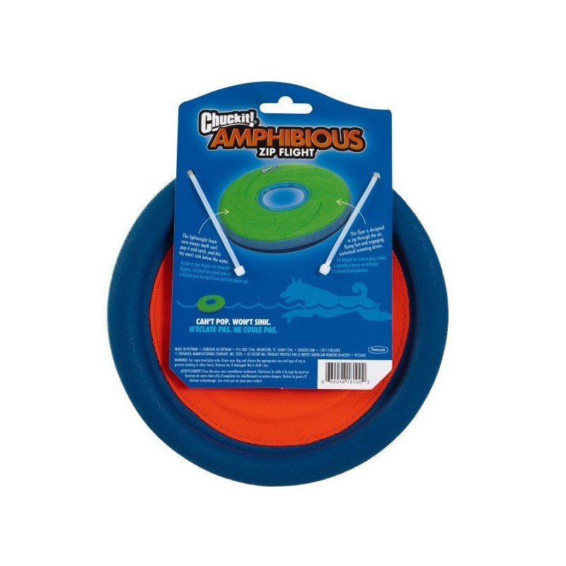 In water, on land, or in the sky, this rugged Chuckit!® ZipFlight® fetch toy is designed for exceptional performance and visibility. It's durable, pliable, and it floats! The lightweight design is perfect for an easy catch that is easy on a dog's mouth. The Ziplight floats through the air for a fast flight, whilst also being unsinkable and it floats high on the water.