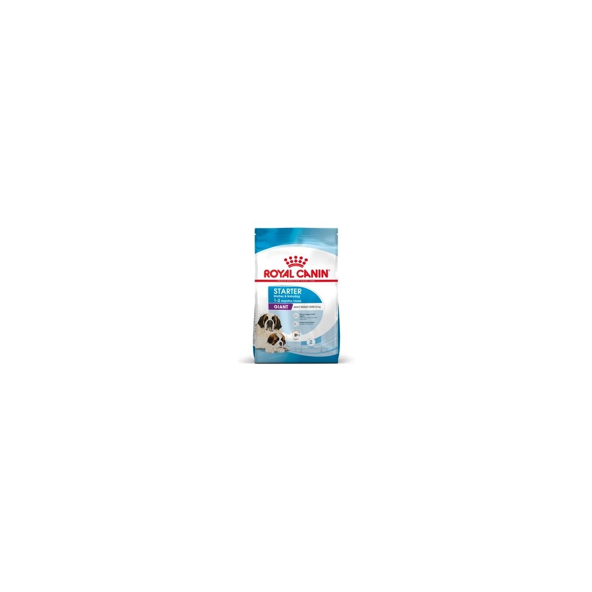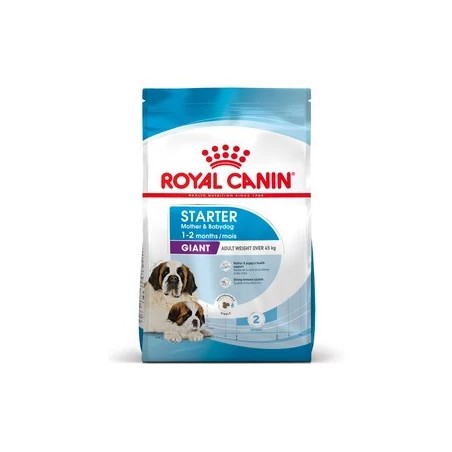 Newborn puppies have unique nutritional requirements to help support their developing senses and nervous systems. Whats more, feeding growing puppies is a strenuous task that can take its toll on your giant dogs metabolism. During the weaning period when the litter are transitioning to solid food, your dog and her nursing puppies need a tailored diet to meet their unique nutritional needs. ROYAL CANIN® Giant Starter Mother & Babydog is specially formulated to support the nutritional needs of new mothers and their puppies. This formula is suitable for giant-sized adult dogs that weigh over 45 kg, and for weaning puppies up to 2 months old. Giant dogs often have big litters sometimes of more than 10 puppies and this is very demanding on their metabolism. This tailored diet is specially adapted to meet your giant dogs high energy needs at the end of gestation and during lactation. Its also formulated to support the healthy development of nursing puppies. This formula contains nutrients such as vitamins C and E to help support natural defences. Thanks to a combination of beneficial prebiotics (such as MOS) and highly digestible proteins, ROYAL CANIN® Giant Starter Mother & Babydog also helps to support a healthy balance of intestinal microbiota (gut flora) for good digestion.This formula is enriched with omega-3 fatty acids (such as DHA) to help support healthy brain development in young puppies. The kibble in ROYAL CANIN® Giant Starter Mother & Babydog is easy to rehydrate with water, giving it an appetising porridge texture thats ideal for weaning puppies. Did you know that a puppys nutritional needs change as they grow? In the short span of 8 weeks, your puppies will need a diet thats specially adapted to meet their nutritional needs during the next growth phase. At this stage, you can transition them onto ROYAL CANIN® Giant Puppy, available as a dry kibble diet that helps support their high growth rate. At Royal Canin, were committed to creating a better world for cats and dogs. For more than 50 years, weve worked closely with breeders, vets, and pet experts, sharing specialist knowledge and scientific research to create a dedicated approach to individualised, precise nutritional solutions. All of our products undergo an extensive quality control process to guarantee the optimal quality of food. When your giant dog and her puppies eat ROYAL CANIN® Giant Starter Mother & Babydog, theyre getting a complete and balanced diet.