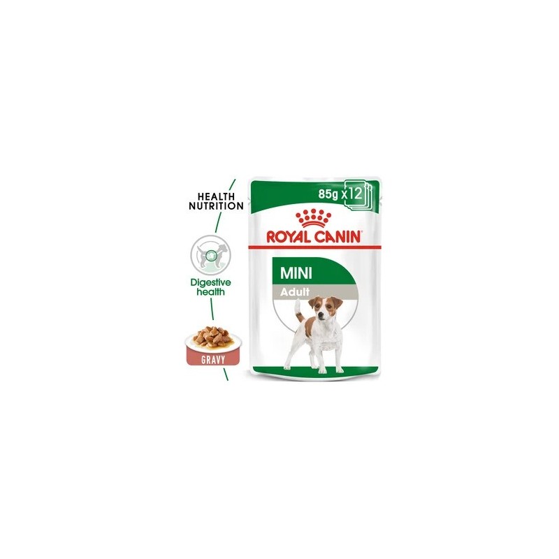Your mini breed dog needs a diet that helps to support and maintain optimal health throughout its adult years. ROYAL CANIN® Mini Adult in Gravy is specially formulated with all the nutritional needs of your mini adult dog in mind. ROYAL CANIN® Mini Adult in Gravy is suitable for all small dogs aged between 10 months 12 years that weigh up to 10kg. The formulation of specific nutrients in ROYAL CANIN® Mini Adult in Gravy helps to support your dogs digestive health whilst also helping to maintain a good balance of intestinal flora. The carefully adapted energy content in ROYAL CANIN® Mini Adult in Gravy helps to maintain an ideal weight in small breed dogs like yours. Avoiding excess weight gain is important during your dogs adult years as its metabolism will be slower than it was when it was a puppy. Whats more, ROYAL CANIN® Mini Adult in Gravy also contains nutrients that help to support your adult dogs healthy skin and coat condition. Its enriched with EPA and DHA which are Omega-3 fatty acids which are beneficial for the maintenance of healthy bones and joints. To cater to each dogs individual preferences, ROYAL CANIN® Mini Adult is also available as dry food, with crunchy and tasty kibble. If youre considering mixed feeding, simply follow our feeding guidelines to ensure your dog gets an accurate amount of both wet and dry food for optimal benefit. At ROYAL CANIN® were committed to providing nutritional solutions to your pets needs. All of our products undergo an extensive quality control process in order to guarantee the optimum quality of food as well as catering to your dogs specific dietary requirements and lifestyle. This means that when your dog eats ROYAL CANIN® Mini Adult in Gravy, its getting a complete and balanced diet.