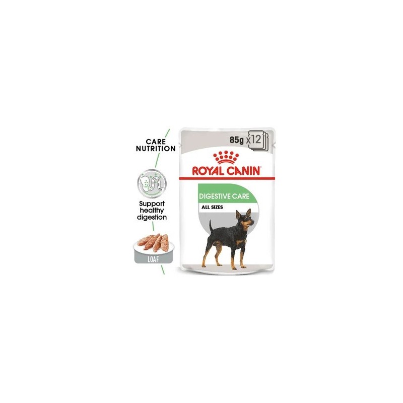 Digestive sensitivities in dogs can often be identified by the consistency and frequency of their stools. Larger dogs with upset stomachs tend to produce runnier stools at a higher frequency, while smaller dogs tend to experience constipation and produce more solid stools. A wide variety of different factors can influence digestive sensitivities in dogs, including age, weight, and breed. But with the right diet, your dog can benefit from nutrients that help to support healthy digestion. ROYAL CANIN® Digestive Care Loaf is a precisely balanced nutritional formula that is specifically created to support healthier digestion in dogs with digestive sensitivities. This food is suitable for dogs of all breeds, shapes and sizes. A diet that is too varied can result in further digestive issues and upset the balance of the good bacteria, or microflora, in your dogs gut. Microflora encourages a healthy digestive environment and can be supported by the right diet containing the right nutrients. This food contains specially selected nutrients that are highly digestible and easy to absorb. The exclusive blend of fibres, prebiotics and protein in this product help to facilitate a good digestive environment that supports healthy digestion. There are other ways in which you can help to support your dogs digestive heath, including: reducing the number of fatty snacks you give them, following a daily feeding schedule and following the on-pack feeding guidelines. Another important thing to remember is that even though your dog is part of the family you should avoid the temptation to feed them human food. At ROYAL CANIN®, everything we do is driven by our passion for pet health. Our Canine Care Nutrition range is the result of decades of advanced scientific research into developing tasty canine nutrition that also supports your dogs health.