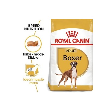 Royal Canin Boxer food has been formulated and designed to meet this magnificent breeds unique needs. Boxers are athletic, muscular dogs. They are prone to diseases that affect heart muscle. Nutrition to help maintain healthy muscle mass, as well as supp