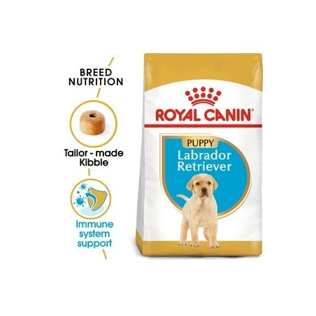 For your Labrador Retriever puppy, growth is an important stage of life. Thats why your puppy needs nutrients to support this growth phase, as well as nutrients that help to maintain optimal health during this key phase. Suitable for puppies up to 15 months old, ROYAL CANIN® Labrador Retriever Puppy is specially formulated with all the nutritional needs of your young Labrador Retriever in mind. Because your puppys immune system develops gradually, ROYAL CANIN® Labrador Retriever Puppy contains a specific complex of antioxidants including vitamin E to help support its natural defences during this time. Thanks to a specially adapted content of energy, protein, calcium and phosphorus, ROYAL CANIN® Labrador Retriever Puppy contributes to the healthy development of your growing puppys bone structure. It also helps to facilitate harmonious weight gain, to help your puppy maintain an ideal weight as it grows. ROYAL CANIN® Labrador Retriever Puppy contains a combination of nutrients with high quality protein (L.I.P.*) and prebiotics (FOS) to support digestive health and balance of intestinal flora. Whats more, they also help to contribute to good stool quality. The kibble in ROYAL CANIN® Labrador Retriever Puppy is tailor-made and specially adapted for the Labrador puppy. The shape and size of the kibble makes it easy for your puppy to pick up and chew, whilst the texture enhances its overall palatability this will help encourage your puppy to readily consume its kibble in order to get the nutrients it needs. At ROYAL CANIN® were committed to providing nutritional solutions to your pets needs. All of our products undergo an extensive quality control process in order to guarantee the optimum quality of food as well as catering to your puppys specific dietary requirements and lifestyle. This means that when your puppy eats ROYAL CANIN® Labrador Retriever Puppy, its getting a complete and balanced diet.
