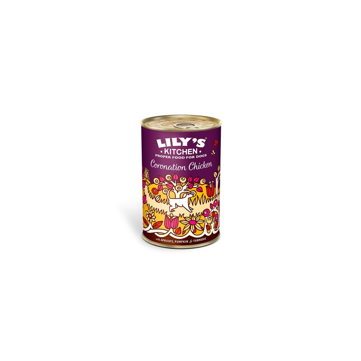 A warm welcome back for this old favourite! A gloriously grain free recipe made with fresh chicken and bursting with juicy fruits, vibrant veg and aromatic spice for an exotic touch of opulence. Give your furry family a lift for the new year with this delicious twist on a much-loved dish. Our Coronation Chicken is nutritionally complete, and filled with scrumptious pumpkin, jewel-like cranberries and apricots, a helping of spinach, all brought together in harmony by the gentle glow of turmeric. We make this recipe with fresh, proper meat, fruits and vegetables, botanical herbs and chelated minerals, to create an exciting, yet easily digestible food for dogs.,Fresh Chicken (65%); Pumpkin (2%); Apricots (2%) Cranberries, Spinach, Vitamins & Chelated Minerals, Turmeric (0.1%) Herbs & botanicals: Golden Rod, Nettle, Aniseed, Rosehips, Marigold Petals, Cleavers, Kelp, Alfalfa, Milk Thistle, Dandelion Root, Burdock Root, Celery Seeds.