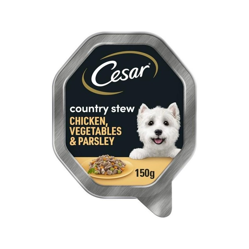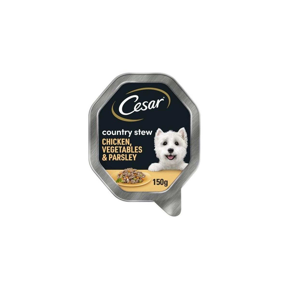 Cesar Country Stew Wet Dog Food with Chicken & Vegetable in Gravy 150g,Meat and Animal Derivatives (43%, of which 92% Natural*, including 4% Chicken Liver), Derivatives of Vegetable Origin, Vegetables (including 0.8% Dried Carrot and Pea Mix, equivalent to 4% Carrot and Pea Mix), Minerals, Vegetable Protein Extracts, Herbs (0.02% Parsley), *Natural ingredients