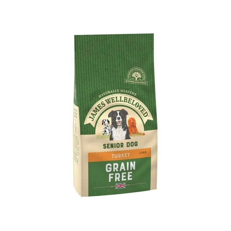 -The turkey grain free dog food, for senior dogs, is a dog food kibble with a blend of taurine, glucosamine, chondroitin and herbs for heart health and to help protect their joints;
