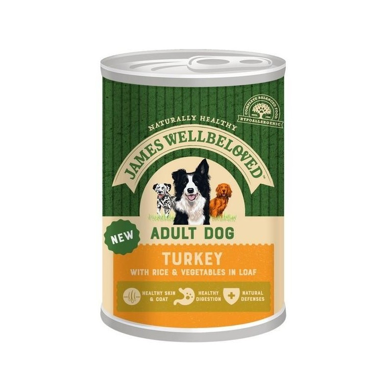 James Wellbeloved Adult Wet Dog Food Tin Turkey & Rice in Loaf 400g
