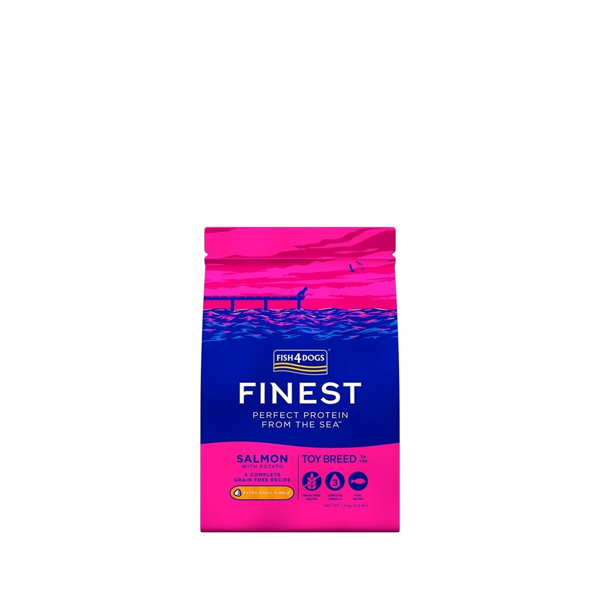 Our Salmon Toy Breed Complete Food provides higher energy density and protein and oil levels, in line with the greater calorific requirements of smaller dogs. The better digestibility of fish makes it an ideal food for toy breeds as it allows them readily take advantage of the energy in our food. The kibble is shaped and smaller, approximately half the size of our small-kibble complete food.