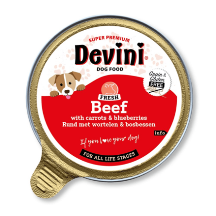 Devini is a simple, honest and wholesome food that comes in a delicious variety of flavours, made in Germany using only high quality and delicious ingredients. Each easy to feed pot contains an incredibly high level of digestible fresh meat alongside Green Lipped Mussels that are rich in Omega 3 fatty acids. The range contains a variety of different meat, fish, fruit and vegetables that are all carefully selected for their benefits. The added Blueberries, Apples and Blackberries provide a healthy dose of antioxidants and essential fibre for proper stool function. Sweet Potato and Pumpkin provide a great source of slow-release carbohydrate. Each pot is made with 100% recyclable packaging. The range is suitable to for all life stages.