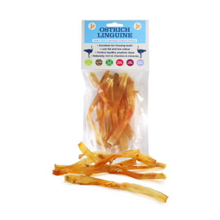 High in Protein and Super Low in Fat, Ostrich Linguine is the perfect natural dental chew as the fibrous texture has super flossing action!