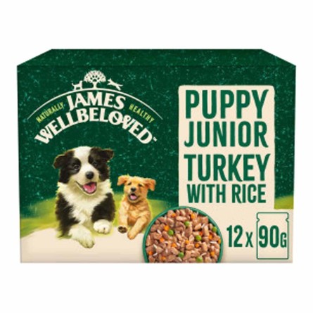 James Wellbeloved Puppy & Junior Hypoallergenic Pouches - Turkey with Rice is a complete wet food for puppies.