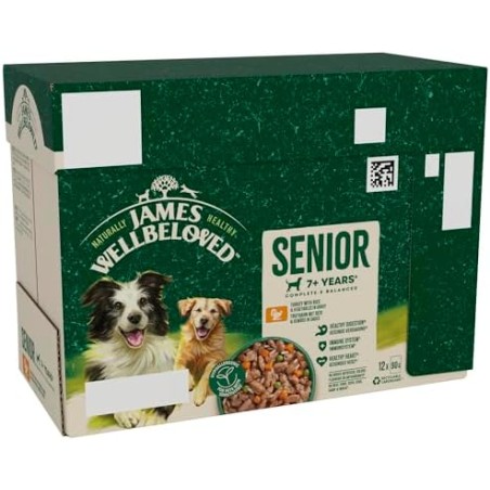 James Wellbeloved Senior Hypoallergenic Pouches – Turkey in Gravy offers your dog balanced, steam-cooked wet food that can be used as a complete meal or as a topping for dry food. The ingredients have been specially combined to meet the needs of senior dogs, with natural ingredients and a hypoallergenic recipe that makes it suitable even for sensitive digestions or skin.