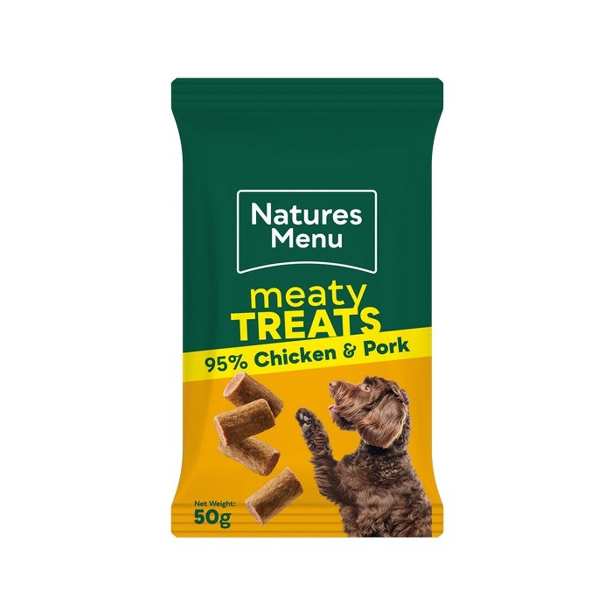 The ultimate real meat training treat. Made with 95% real chicken and pork. An irresistible reward for dogs. Gluten free. Pack size 50g.